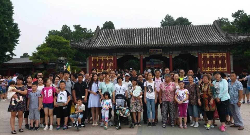 優(yōu)秀員工及其家屬在鴿子窩公園前留念