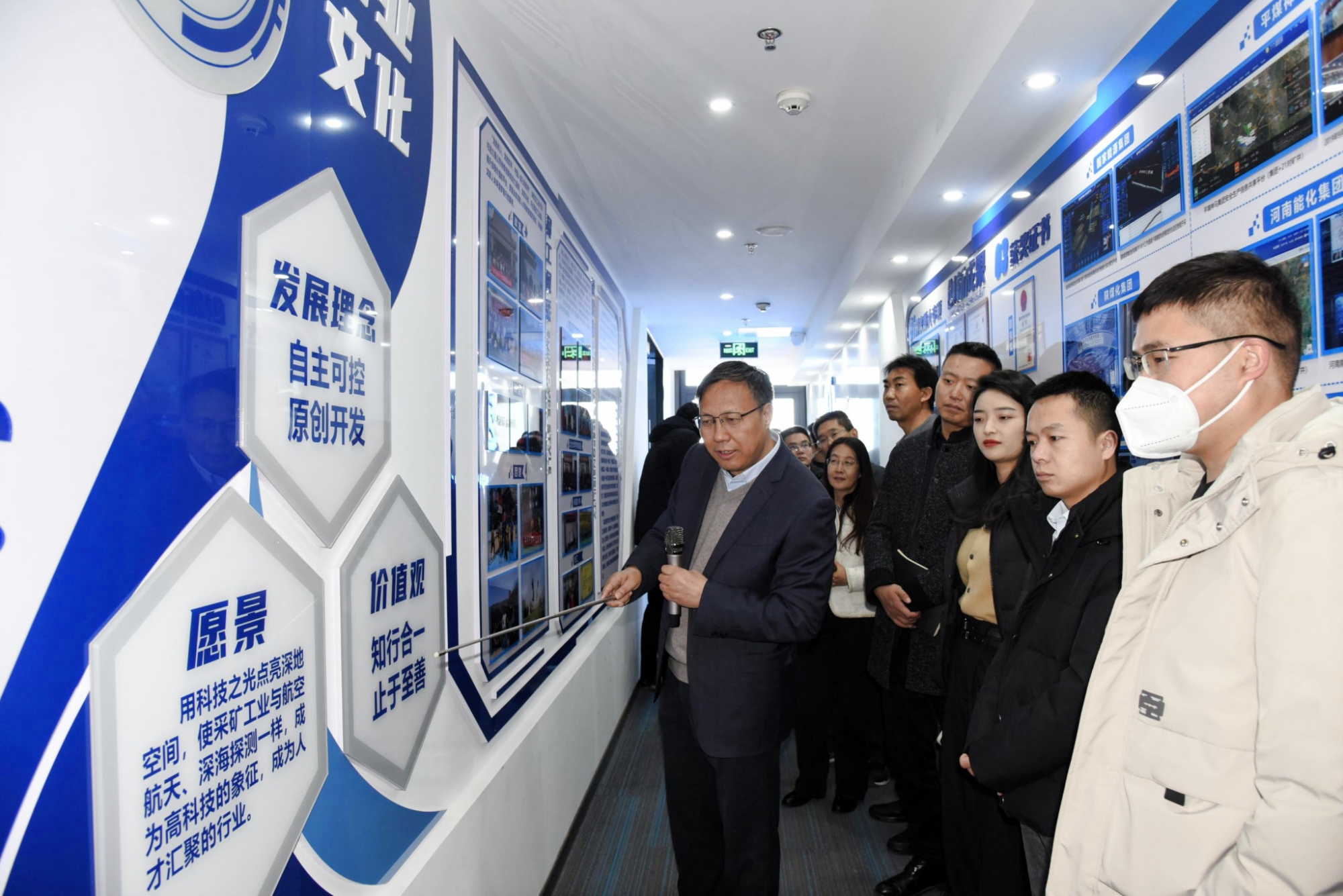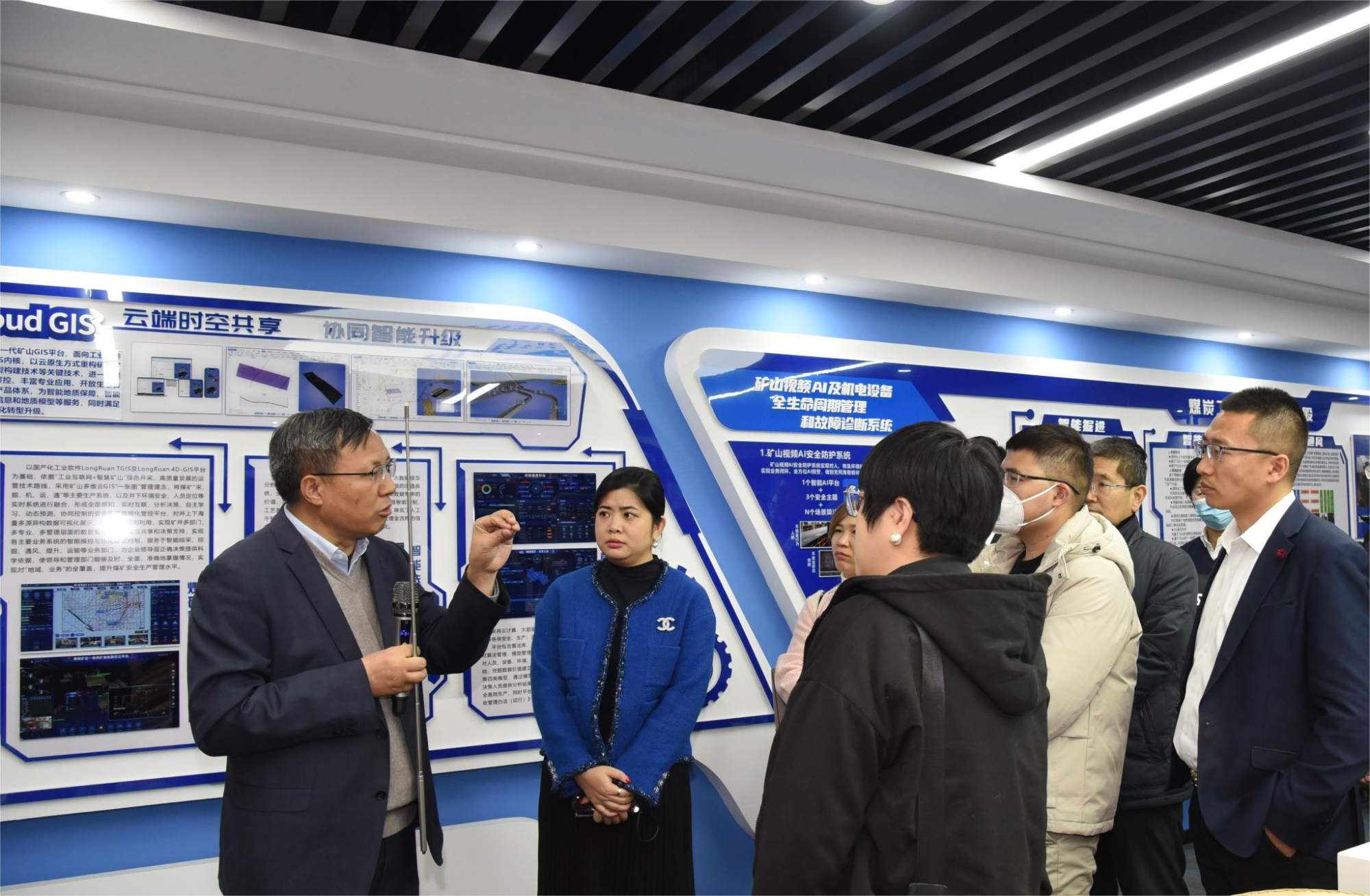 通過(guò)參觀展廳,董事長(zhǎng)毛善君先生向投資者詳細(xì)介紹了龍軟科技的發(fā)展歷程、產(chǎn)品系列和企業(yè)文化。公司成立于2002年,作為智能化煤礦工業(yè)軟件信息化、智能化領(lǐng)域的行業(yè)龍頭,公司始終秉持“自主平臺(tái)、原創(chuàng)開(kāi)發(fā)”的信念,以時(shí)空智能、工業(yè)物聯(lián)網(wǎng)、大數(shù)據(jù)、云計(jì)算和數(shù)字孿生等高新技術(shù)為基礎(chǔ),以自主研發(fā)的“龍軟專業(yè)地理信息系統(tǒng)”為核心,建立了具備自主知識(shí)產(chǎn)權(quán)的龍軟特色智能礦山技術(shù)、裝備、標(biāo)準(zhǔn)、服務(wù)、管理及運(yùn)維體系。公司成功打造了以透明地質(zhì)保障系統(tǒng)為技術(shù)基座的龍軟智能礦山綜合數(shù)智解決方案,涵蓋了礦山智能化建設(shè)的主要領(lǐng)域。公司參與完成的科技成果已先后獲得國(guó)家科技進(jìn)步二等獎(jiǎng)1項(xiàng)、教育部一等獎(jiǎng)1項(xiàng),中國(guó)煤炭工業(yè)協(xié)會(huì)科學(xué)技術(shù)獎(jiǎng)特等獎(jiǎng)2項(xiàng)、行業(yè)協(xié)會(huì)一等獎(jiǎng)11項(xiàng)。作為細(xì)分行業(yè)的技術(shù)引領(lǐng)者,公司持續(xù)參加“十一五”、“十二五”、“十三五”“十四五”和863科技項(xiàng)目等多項(xiàng)國(guó)家重點(diǎn)研發(fā)計(jì)劃,彰顯了公司研發(fā)為本、科創(chuàng)報(bào)國(guó)的立司之本。