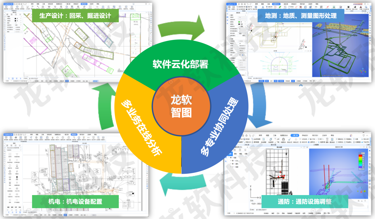 龍軟智圖提供了包括編輯、繪圖、修改、二三維一體化在內(nèi)的豐富圖形處理功能,以及各類面向地測(cè)、通防、機(jī)電與采礦設(shè)計(jì)的專業(yè)工具,操作習(xí)慣與CAD保持一致,是“GIS+CAD” 技術(shù)和功能深度融合的礦用圖形云處理系統(tǒng),方便用戶操作使用。系統(tǒng)可直接打開dwg/dxf格式文件進(jìn)行編輯處理,編輯的圖件可方便云端存儲(chǔ)、隨需訪問(wèn)、歷史回溯,成果可全部或按區(qū)域?qū)С鰹镃AD、PDF、圖片等。