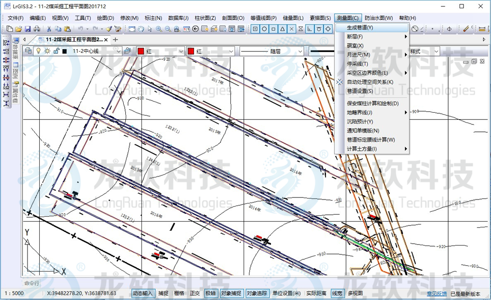 地測圖形協同管理系統主要包括地測數據庫管理、等值線圖、測量圖、儲量圖、柱狀圖、剖面圖、素描圖、防治水圖、瓦斯地質圖等模塊。該系統以先進的算法、精準的空間數據信息處理、高效的圖形處理流程,實現等值線圖、采掘工程平面圖、鉆孔柱狀圖、綜合柱狀圖、煤巖層對比圖、勘探線剖面圖、預想剖面圖、底板等高線及儲量估算圖、巷道素描圖等地測圖件的繪制與管理,是礦井相關專業制圖的基礎。